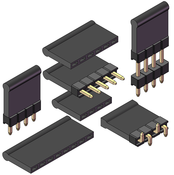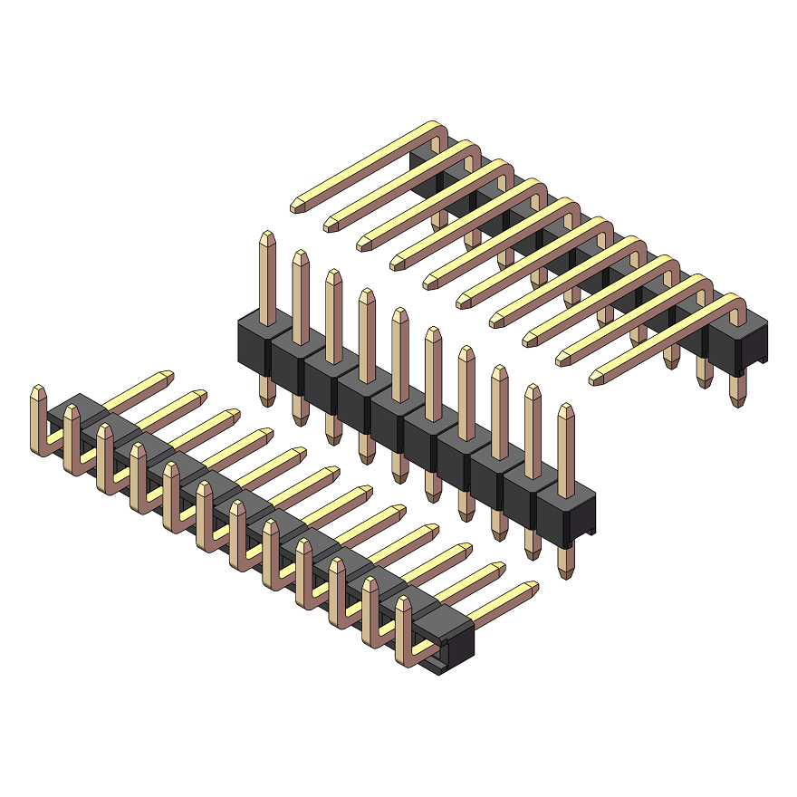 2.54mm 排针 单排双塑 180度直针/90度弯针