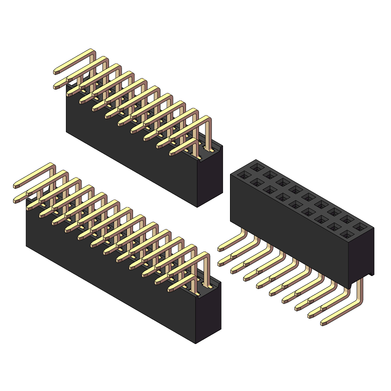 2.0mm 排母 H=5.2 双排双侧插 90度弯针