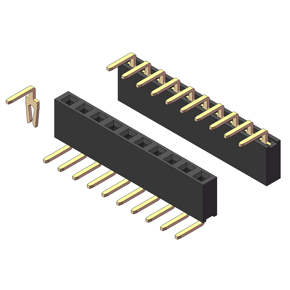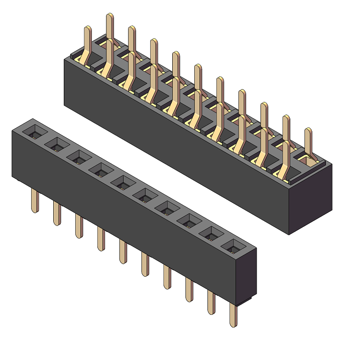 2.54mm 排母 H=3.55 单/双排 Y型倒插式 180度直针