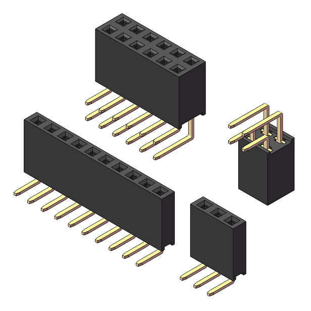 2.54mm 排母 H=8.5 单/双排 Y型针 90度弯针