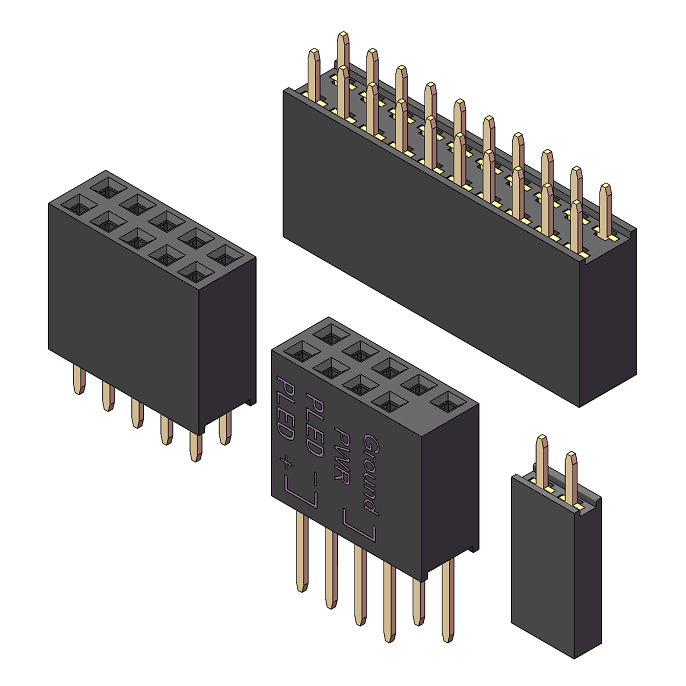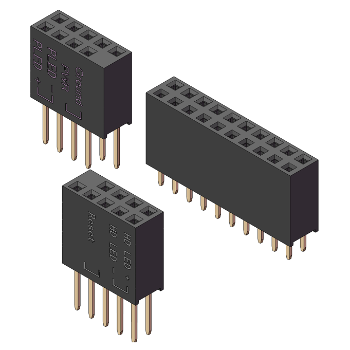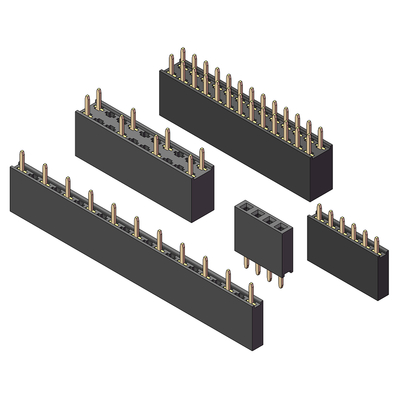 2.54mm 排母 H=8.5 单/双排 Y型针加塑胶 180度直针 PC104