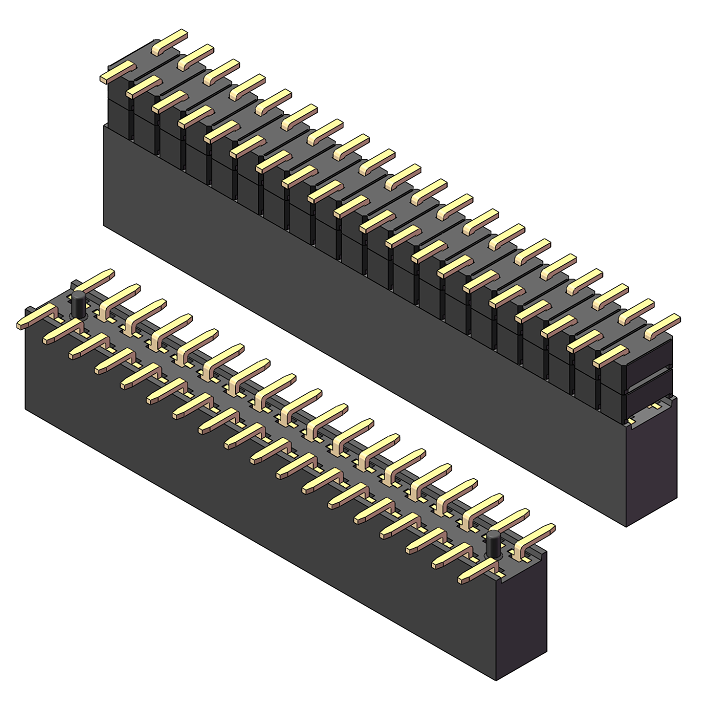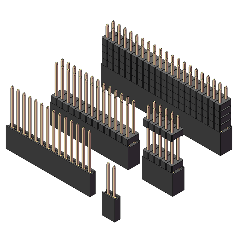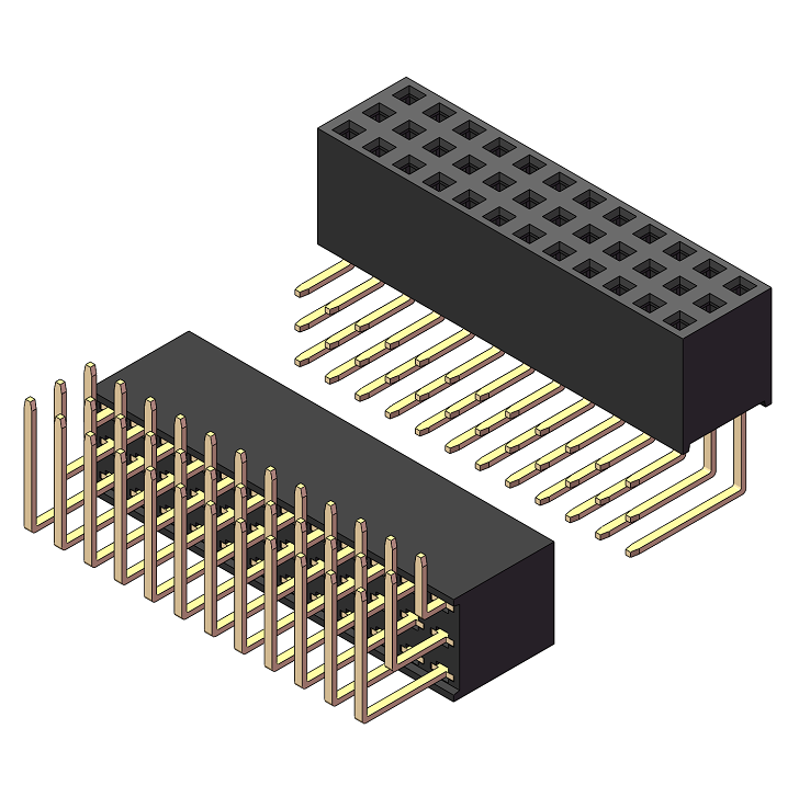2.54mm 排母 H=12.0 双排加高 Y型针 180度直针