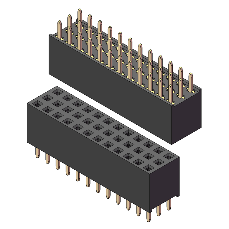 2.54mm 排母 H=8.5 双排 Y型针 卧贴