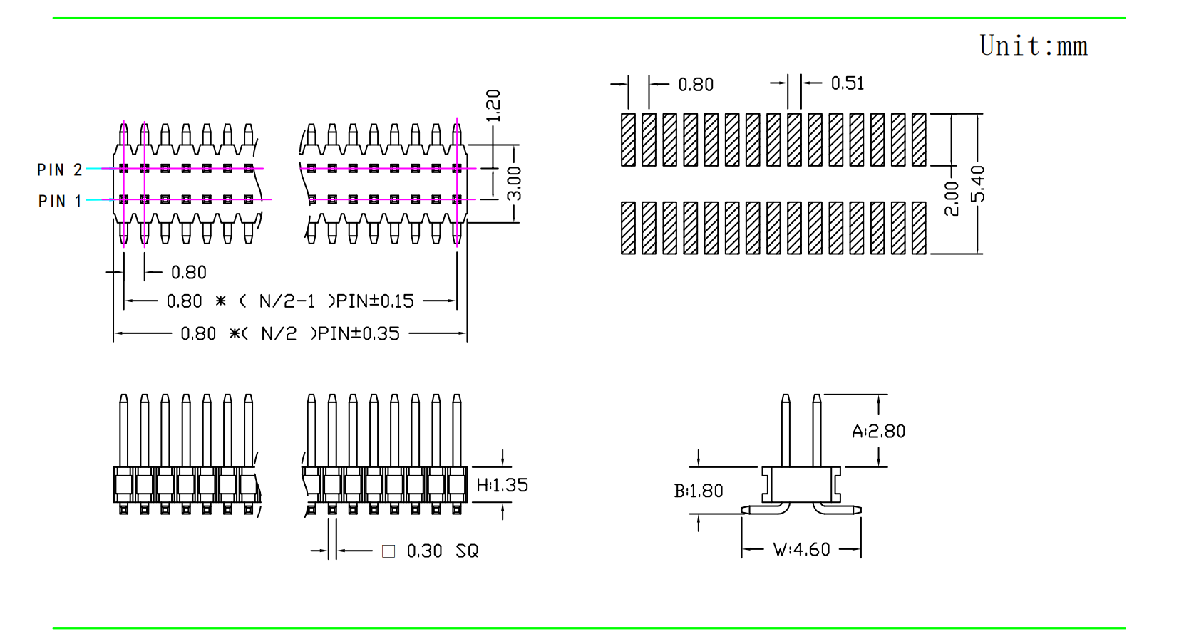 0.8*1.2mm 排针 双排 SMT|连接器|深圳市创荣世纪科技有限公司
