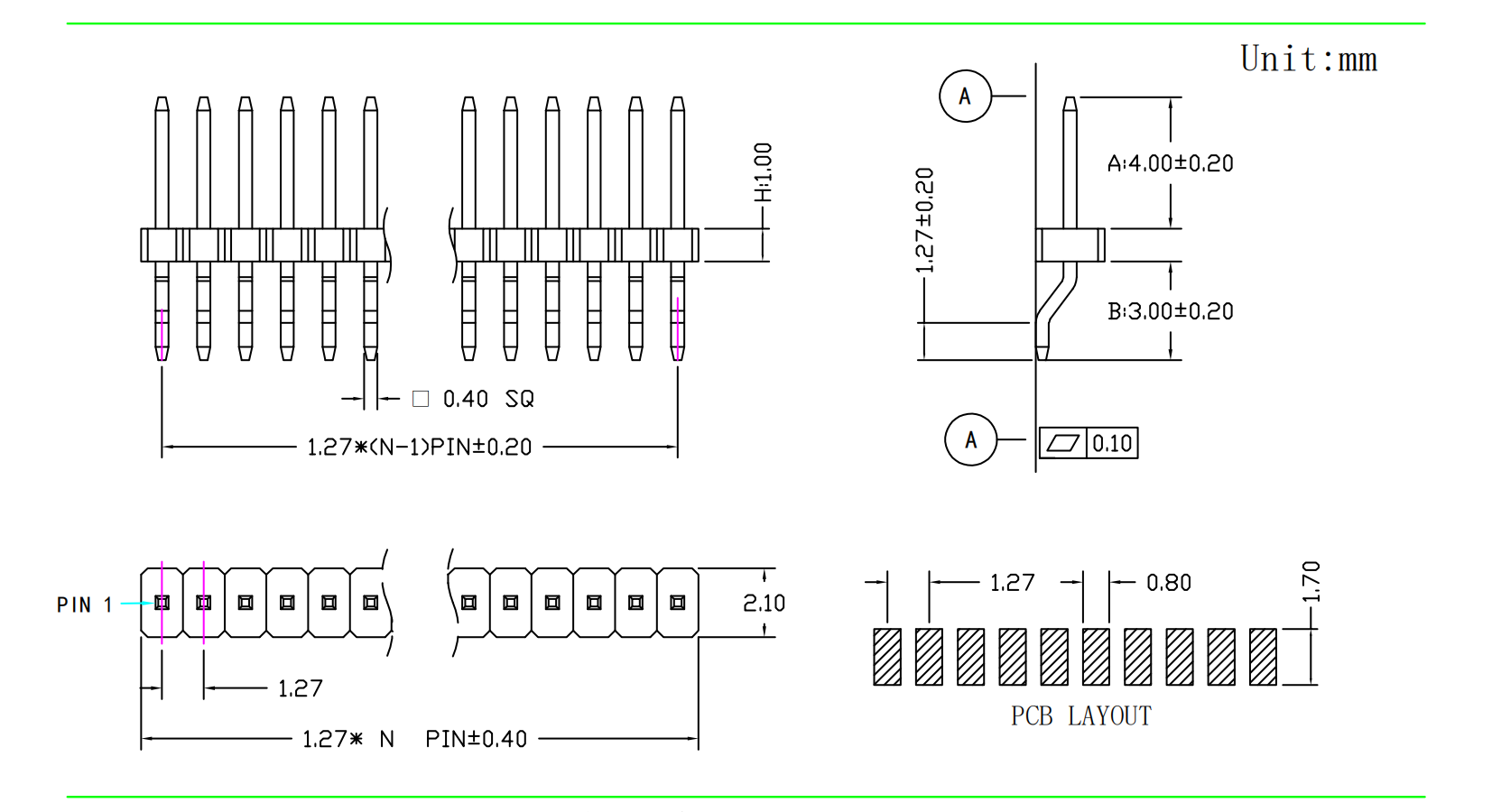 首页 > 连接器 > 1.27mm 排针 单排 卧贴