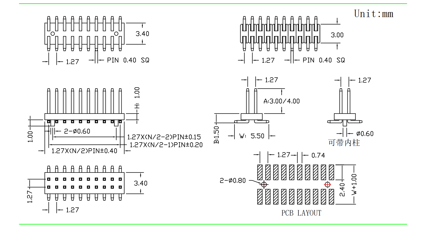 1.27mm 排针 双排 SMT|连接器|深圳市创荣世纪科技有限公司