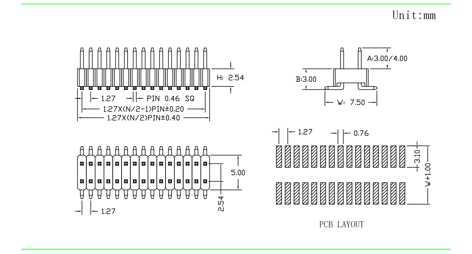 1.27*2.54mm 0.46孔排针 双排 SMT|连接器|深圳市创荣世纪科技有限公司