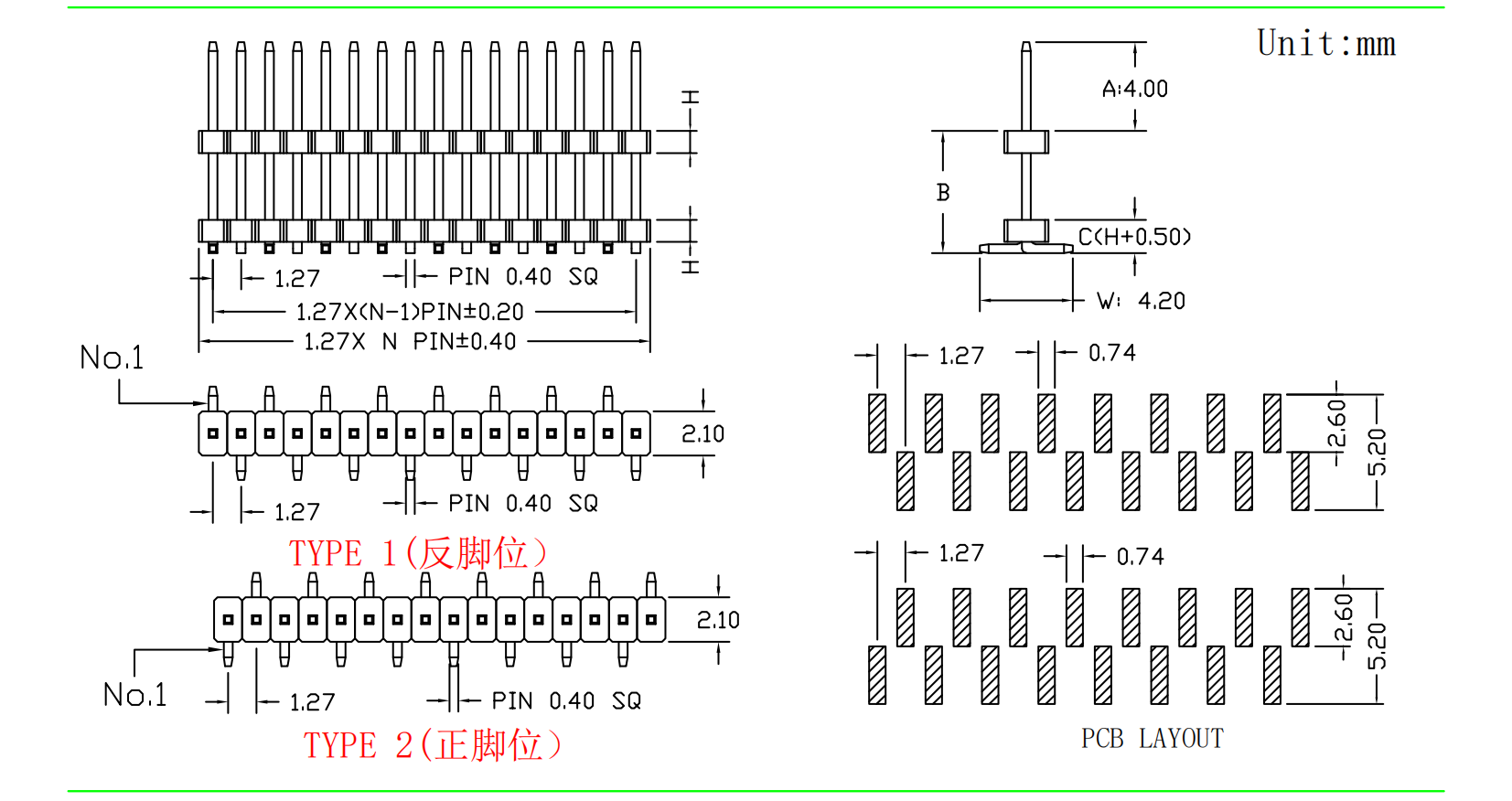 1.27mm 0.40孔排针 单排双塑 SMT|连接器|深圳市创荣世纪科技有限公司
