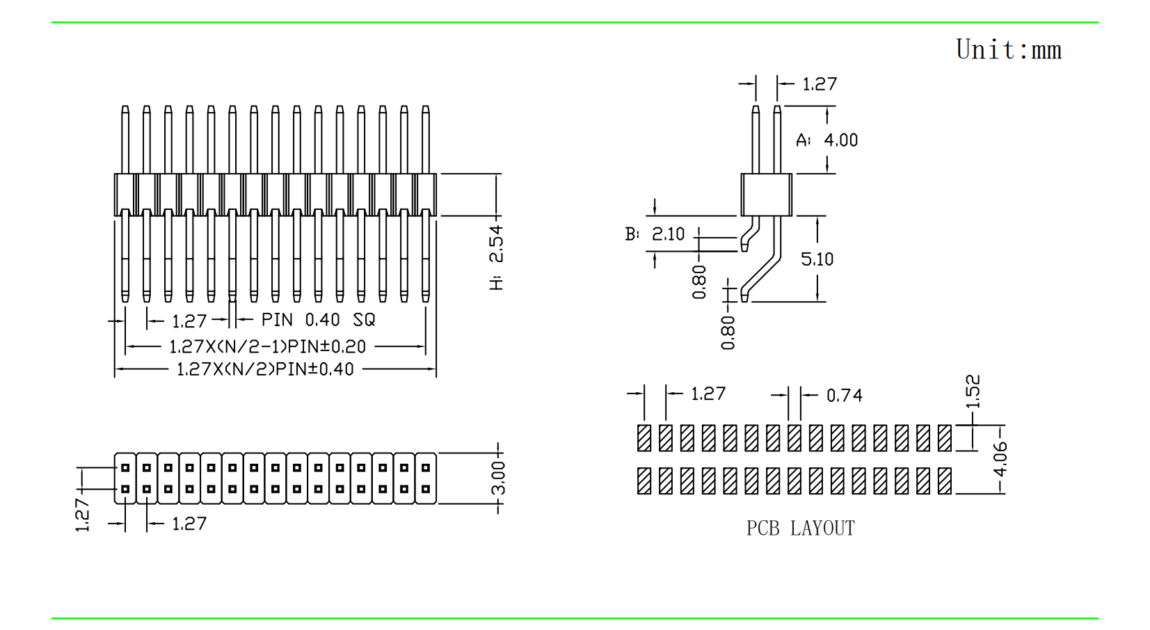 1.27mm 排针 双排 卧贴
