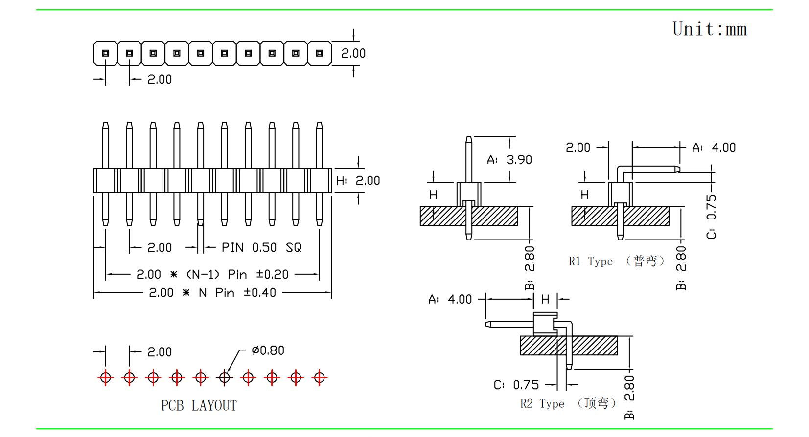 2.0mm 排针 单排 180度直针/90度弯针|连接器|深圳市创荣世纪科技有限公司
