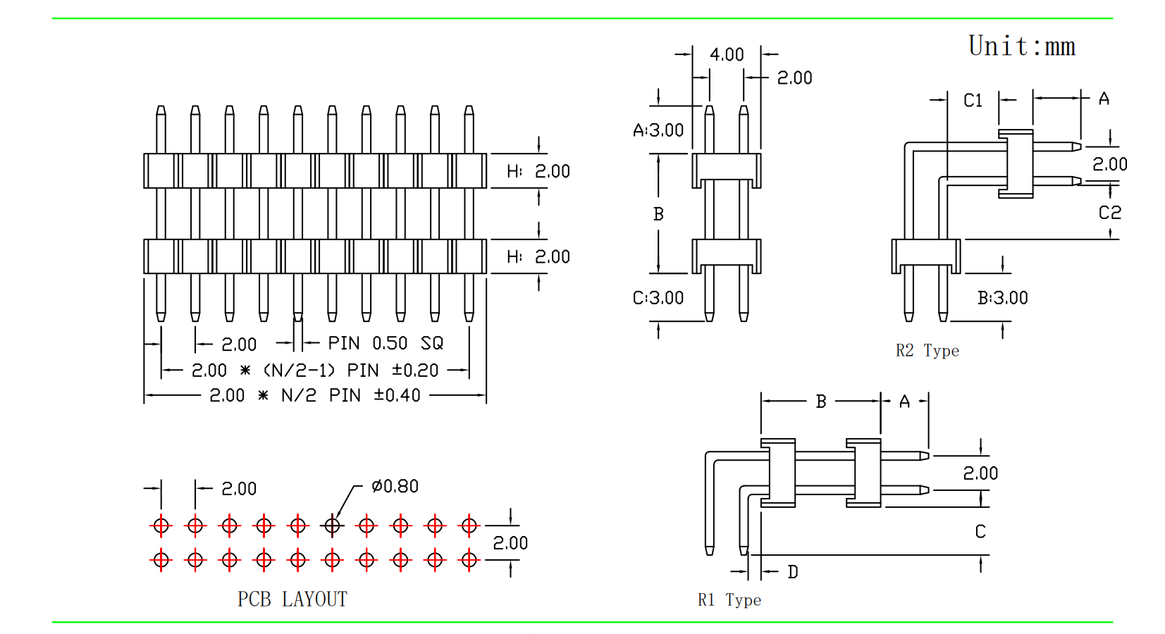 2.0mm 排针 双排双塑 180度直针/90度弯针|连接器|深圳市创荣世纪科技有限公司