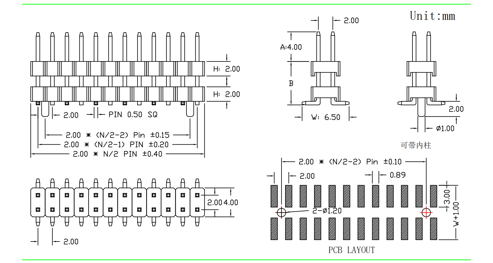 2.0mm 排针 双排双塑 SMT|连接器|深圳市创荣世纪科技有限公司