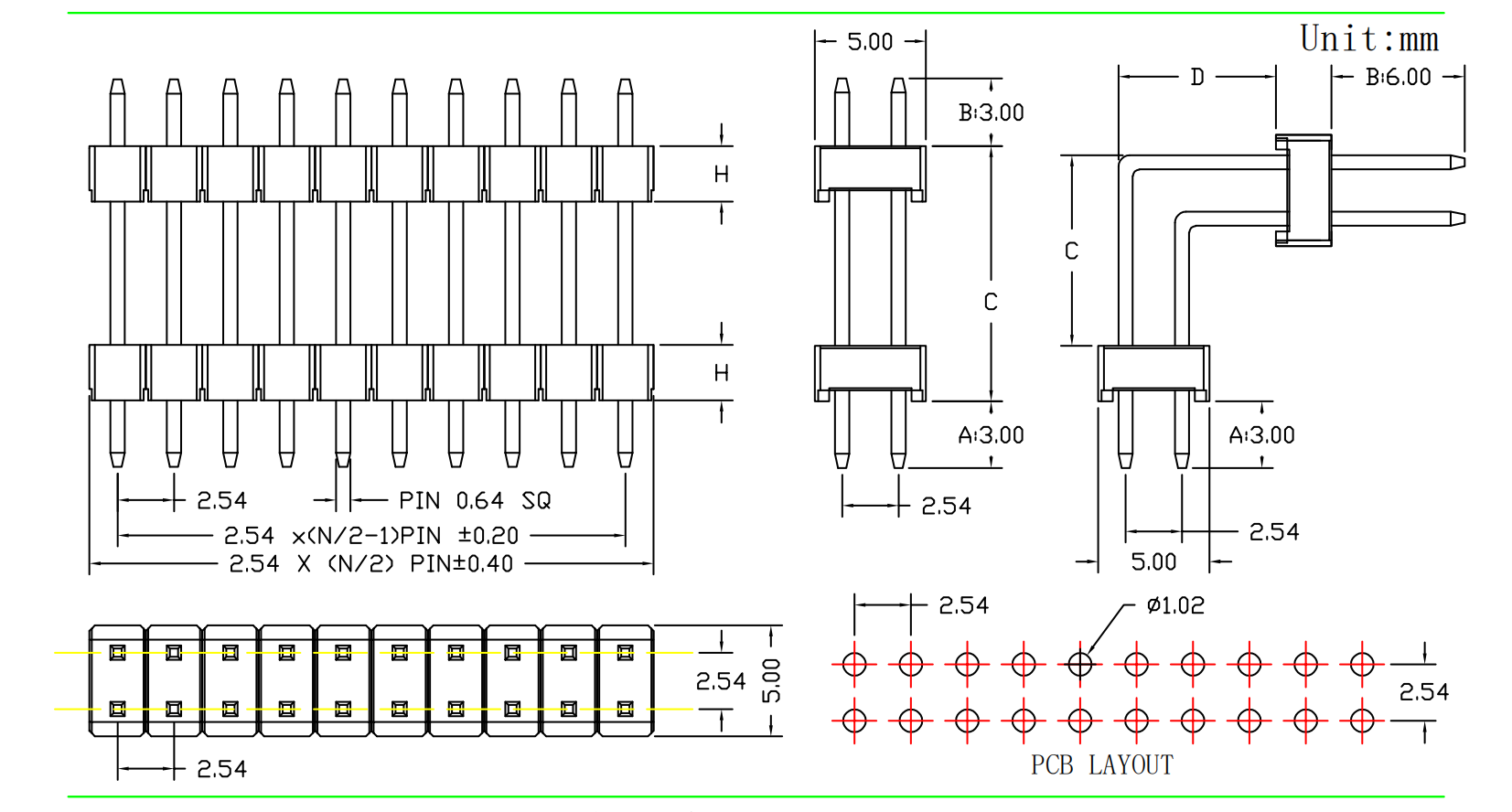 2.54mm 排针 双排双塑 180度直针/90度弯针|连接器|深圳市创荣世纪科技有限公司