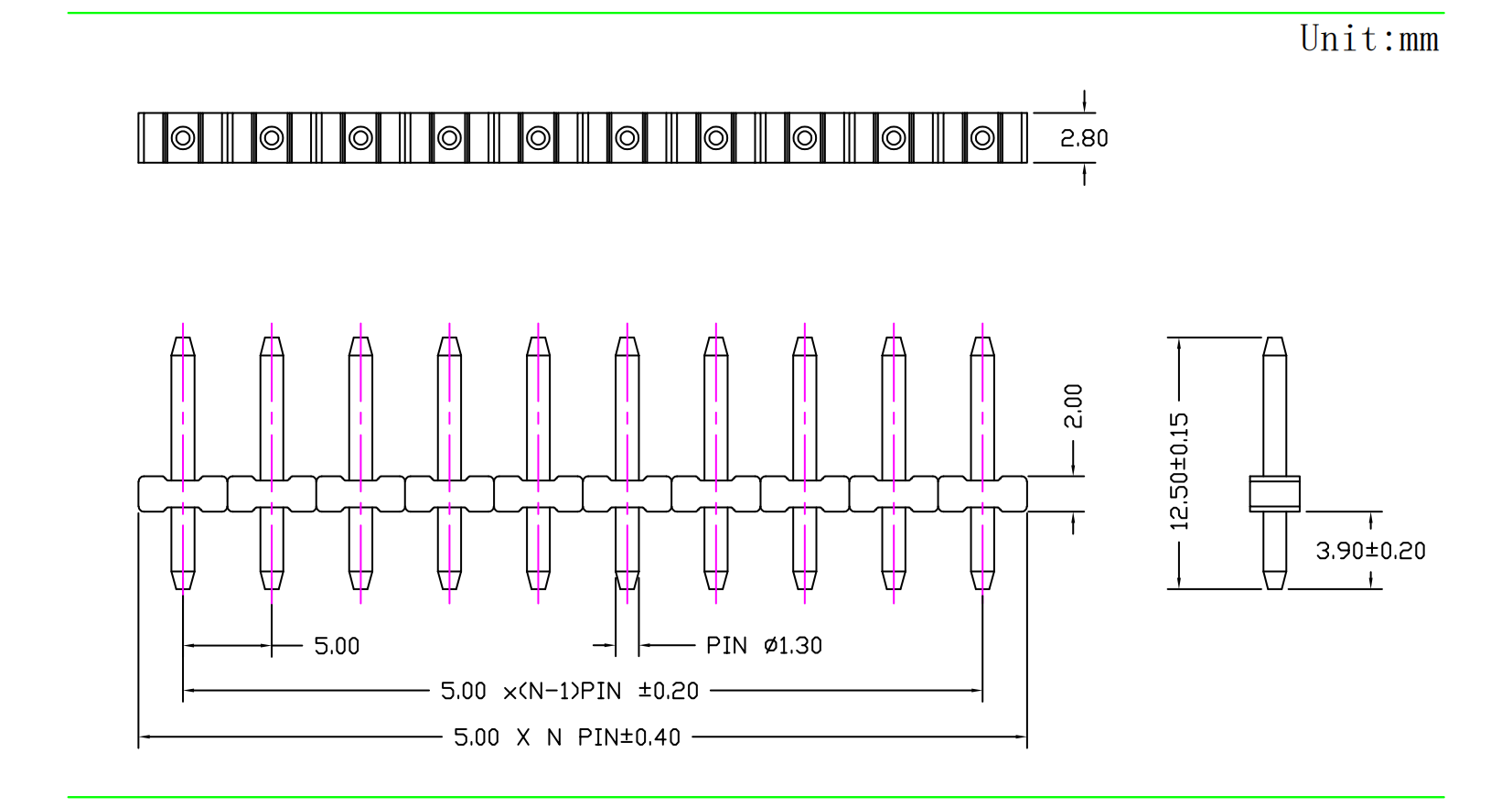 5.00mm 排针 单排 180度直针|连接器|深圳市创荣世纪科技有限公司