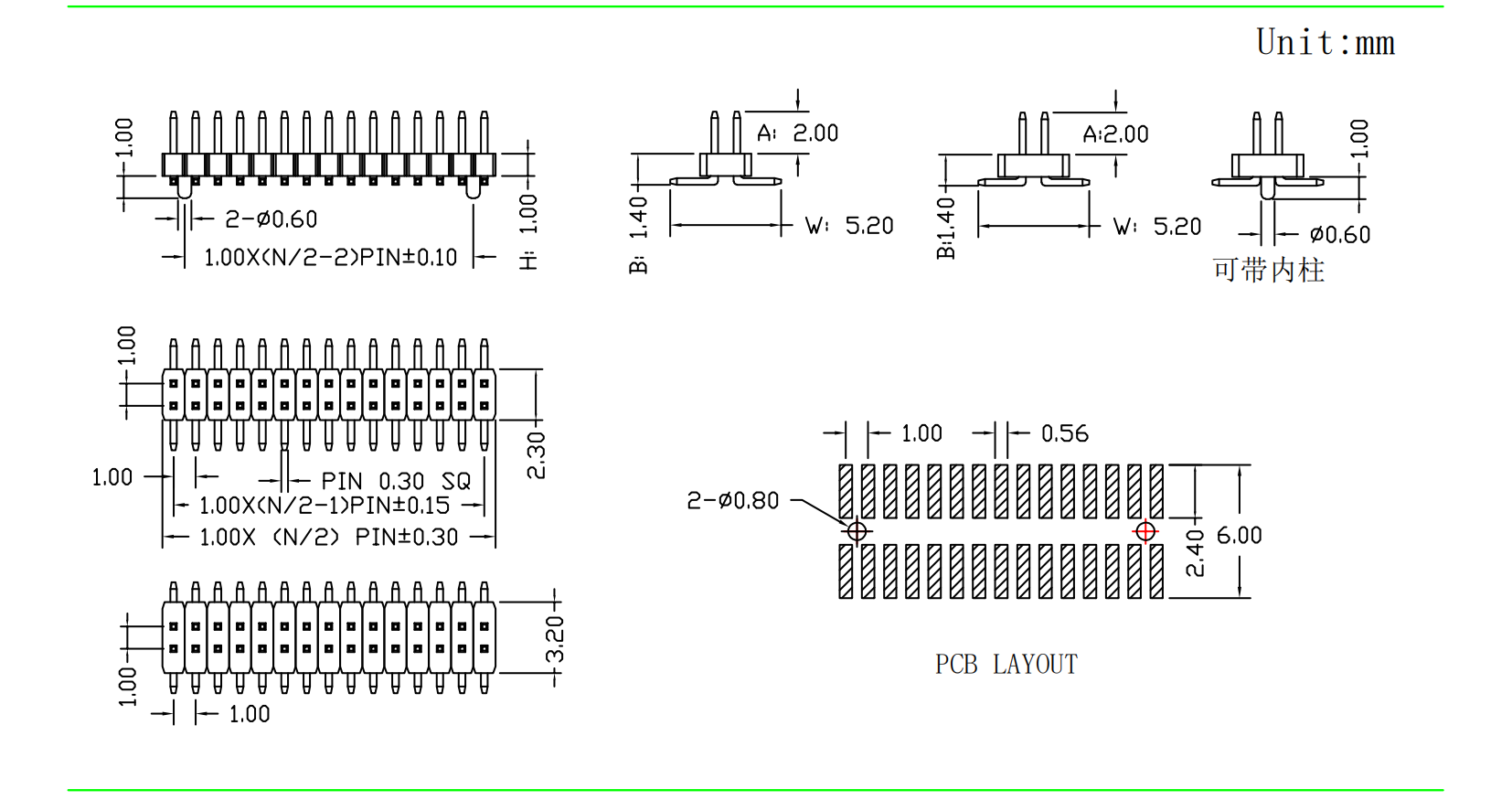 1.00mm 排针 双排 SMT|连接器|深圳市创荣世纪科技有限公司
