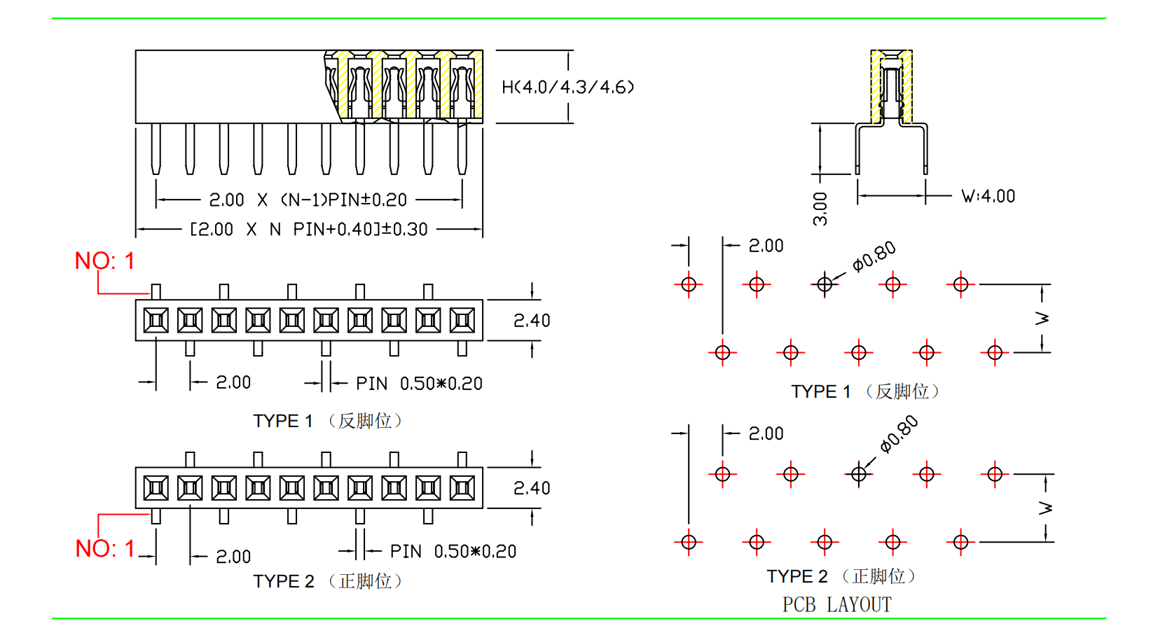 2.0mm 排母 H=4.0/4.3/4.6 单排 蜈蚣脚|连接器|深圳市创荣世纪科技有限公司