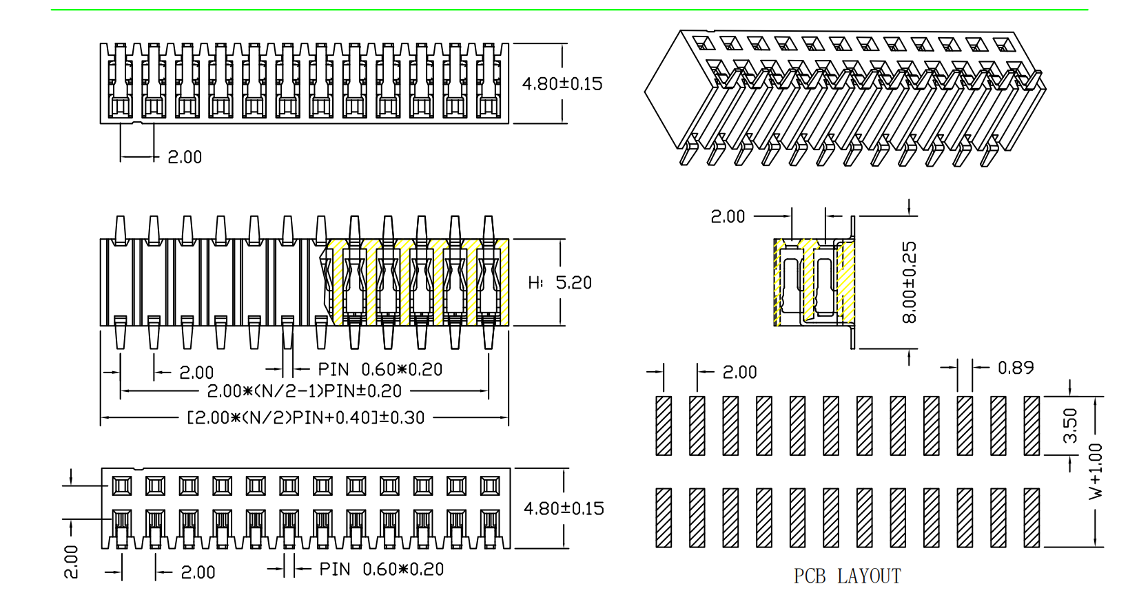 2.0mm 排母 H=5.2 双排双侧插 SMT|连接器|深圳市创荣世纪科技有限公司