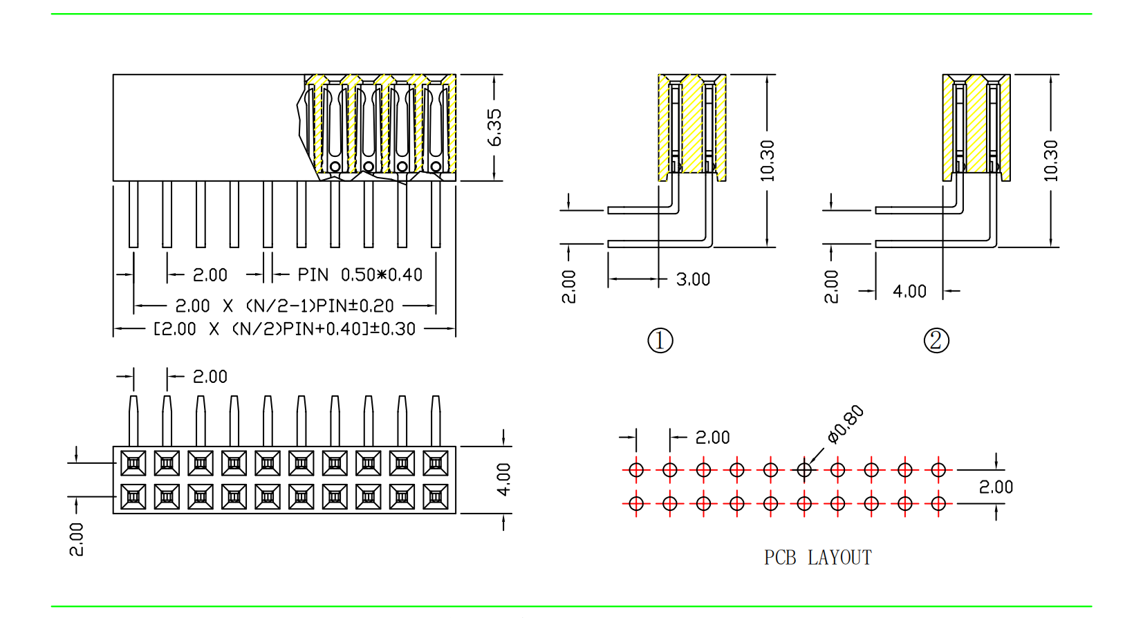 2.0mm 排母 H=6.35 双排 90度弯针|连接器|深圳市创荣世纪科技有限公司