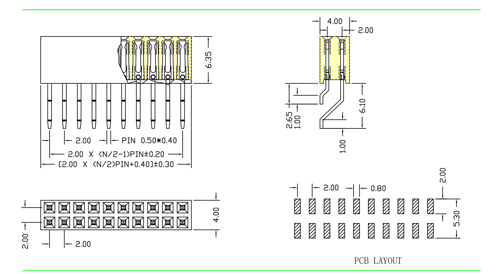 2.0mm 排母 H=6.35 双排 卧贴|连接器|深圳市创荣世纪科技有限公司
