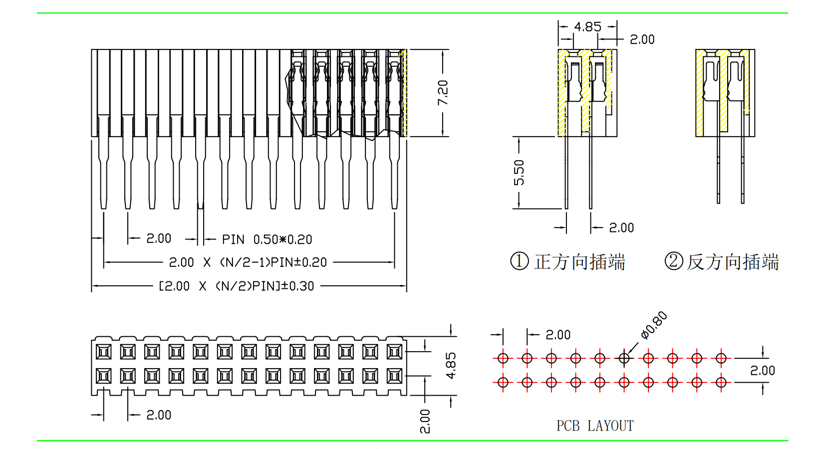 2.0mm 排母 H=7.2 双排 180度直针|连接器|深圳市创荣世纪科技有限公司