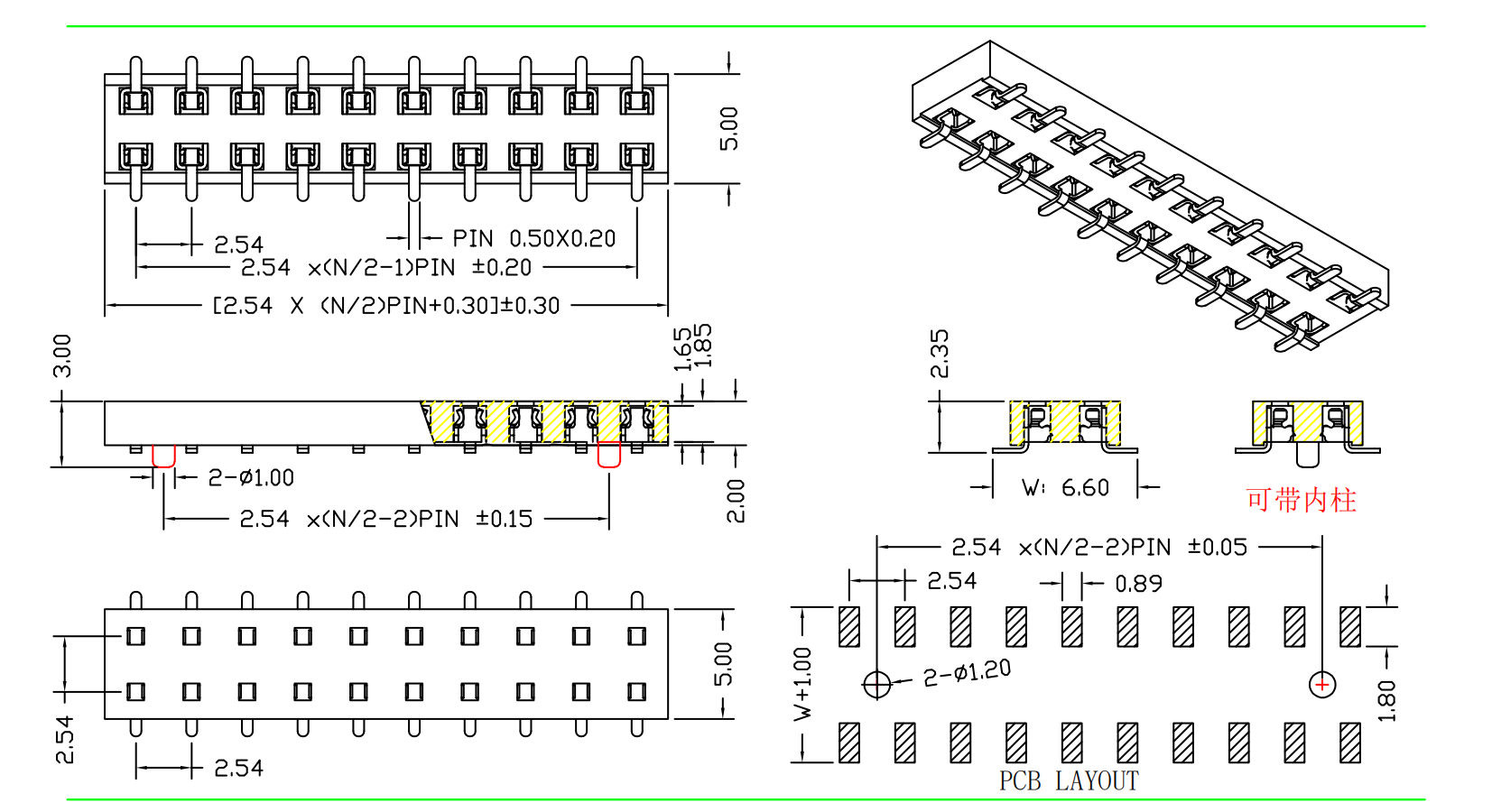 2.54mm 排母 H=2.0 双排 SMT