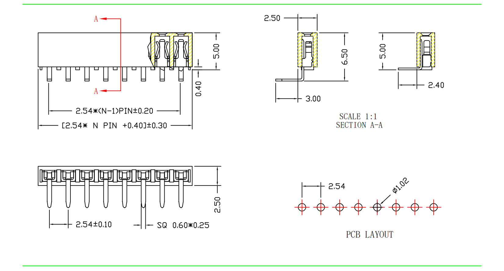 2.54mm 排母 H=5.0 单排 90度弯针|连接器|深圳市创荣世纪科技有限公司