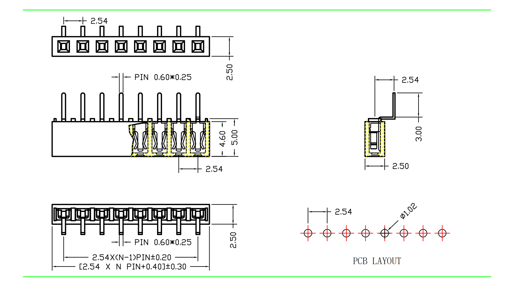 2.54mm 排母 H=5.0 单排 单边蜈蚣脚|连接器|深圳市创荣世纪科技有限公司