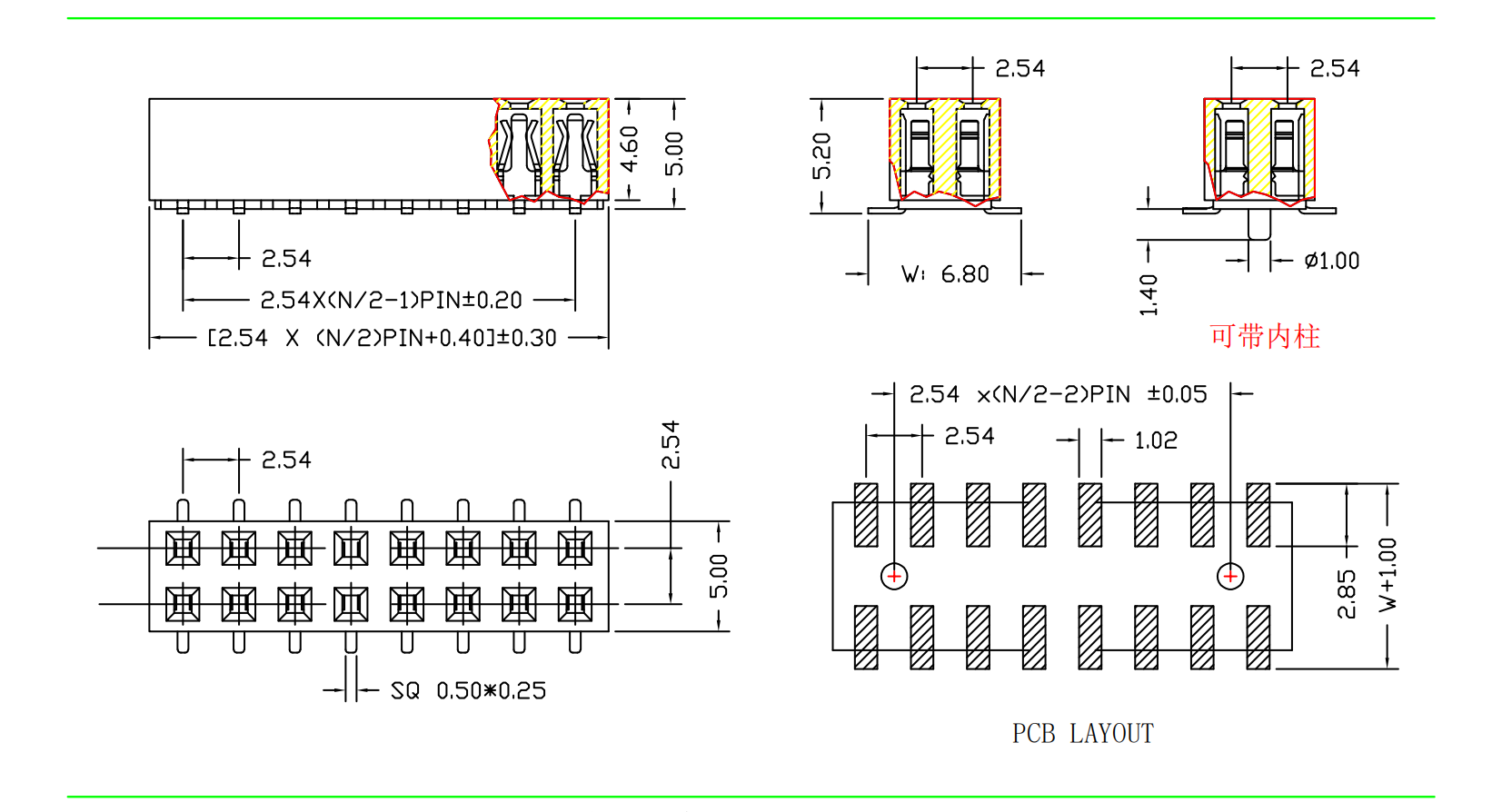 2.54mm 排母 H=5.0 双排 SMT|连接器|深圳市创荣世纪科技有限公司