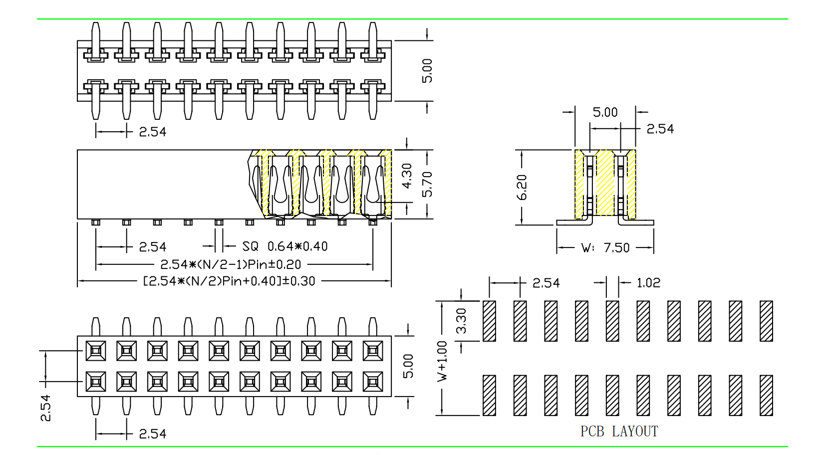 2.54mm 排母 H=5.7 双排 SMT
