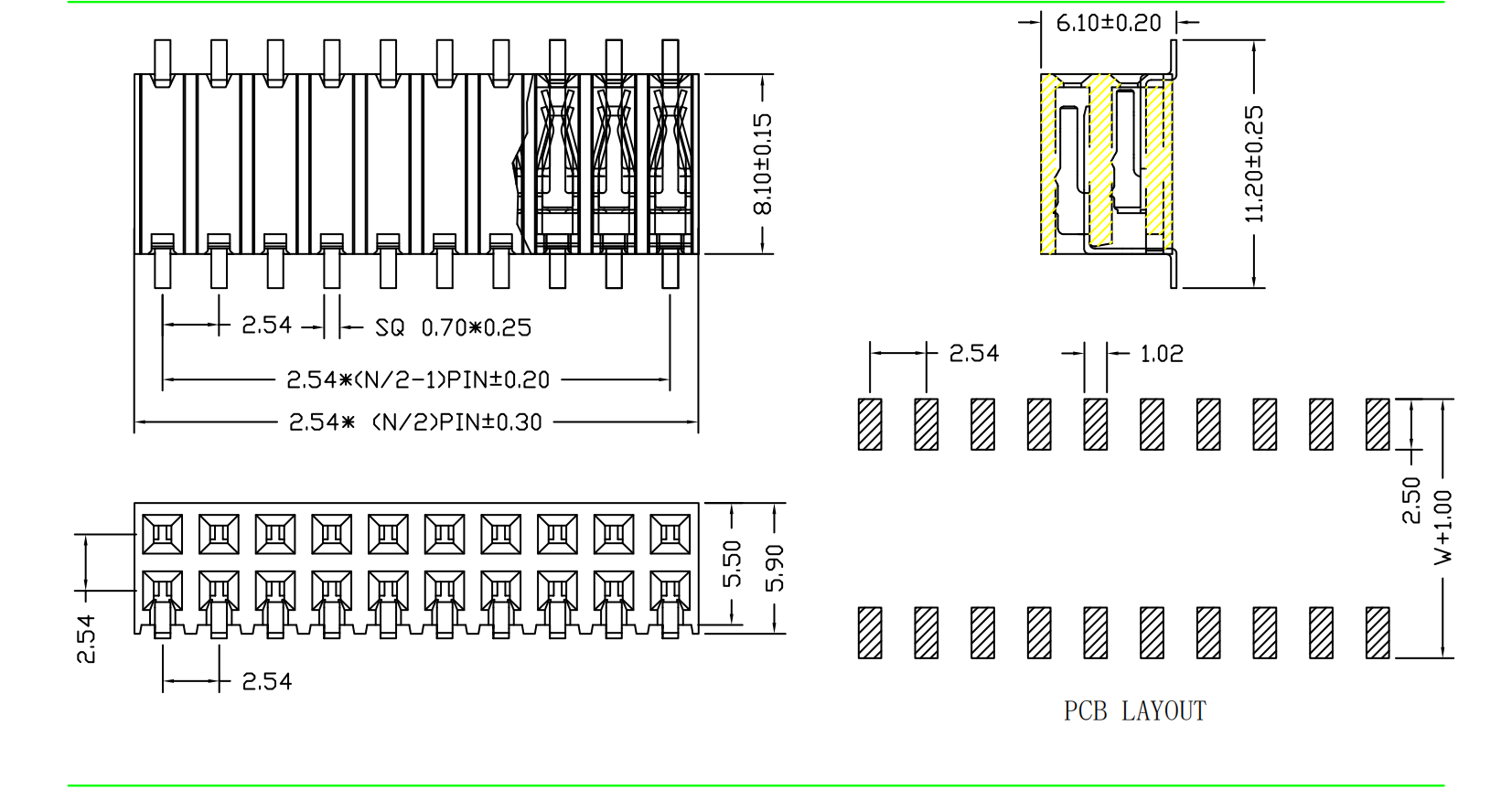 2.54mm 排母 H=8.1 双排双侧插 SMT|连接器|深圳市创荣世纪科技有限公司