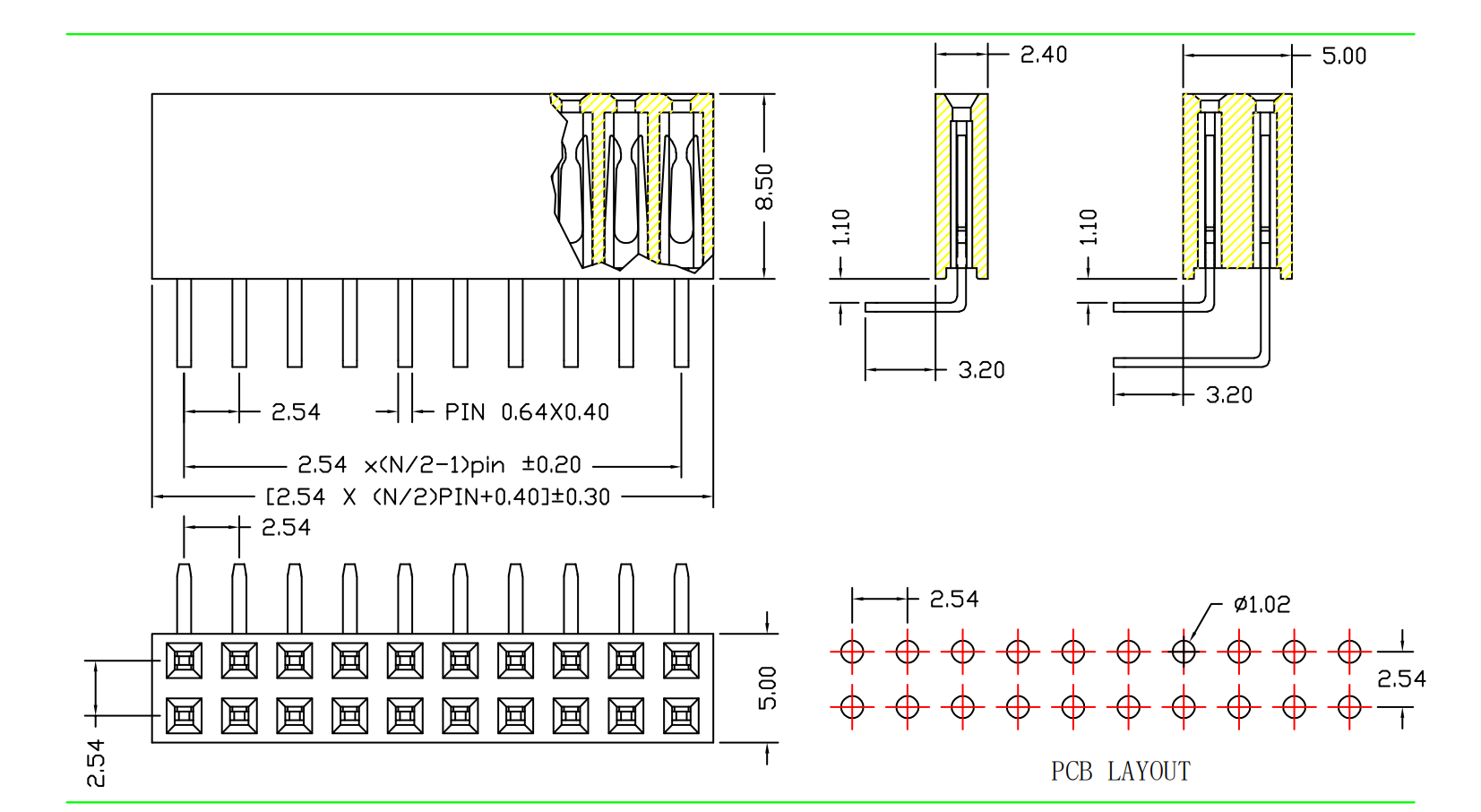 2.54mm 排母 H=8.5 单/双排 Y型针 90度弯针|连接器|深圳市创荣世纪科技有限公司