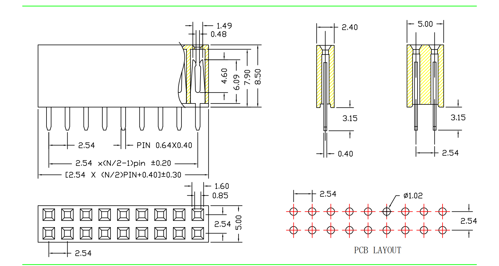 2.54mm 排母 H=8.5 单/双排 Y型针 180度直针|连接器|深圳市创荣世纪科技有限公司