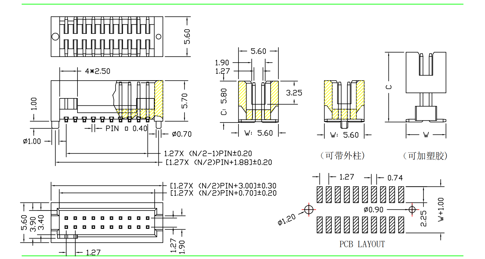 1.27mm 简牛 H=5.7 SMT|连接器|深圳市创荣世纪科技有限公司
