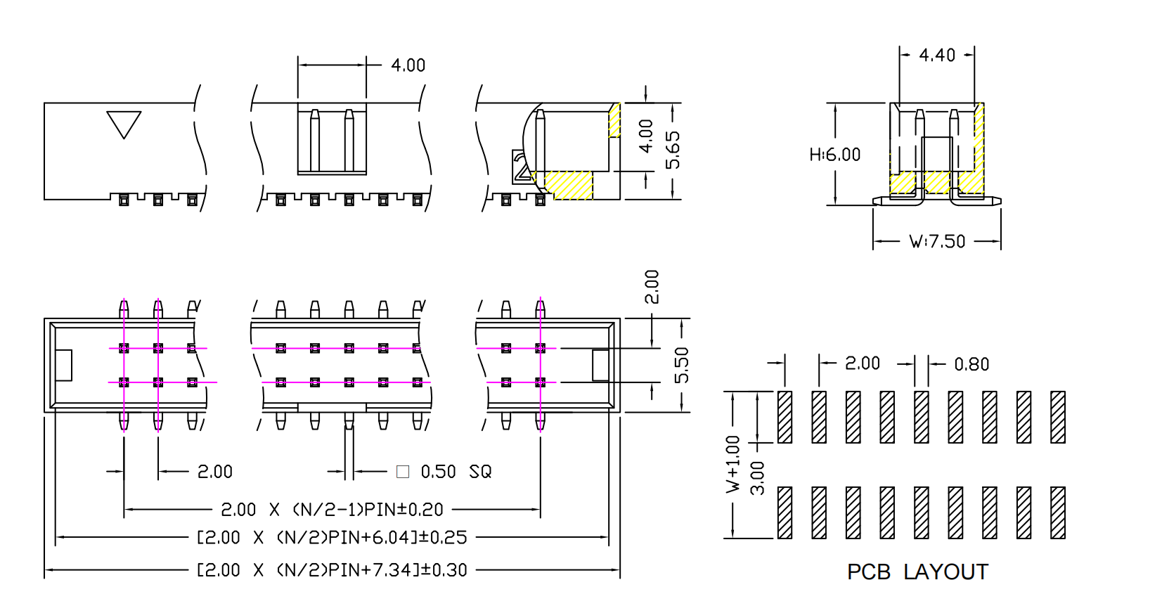 2.0mm 简牛 带蝴蝶扣口 SMT